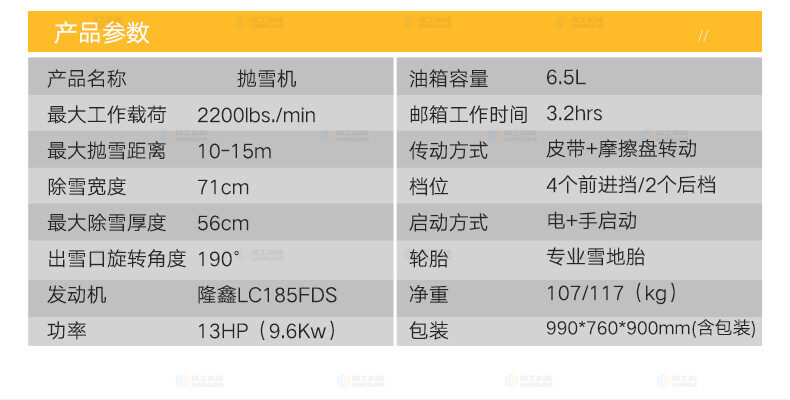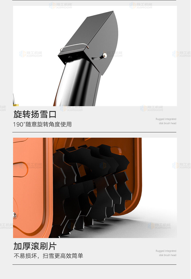 小型掃雪車由中型卡車或重型卡車、四缸汽車發動機、吸雪管、鼓風機、