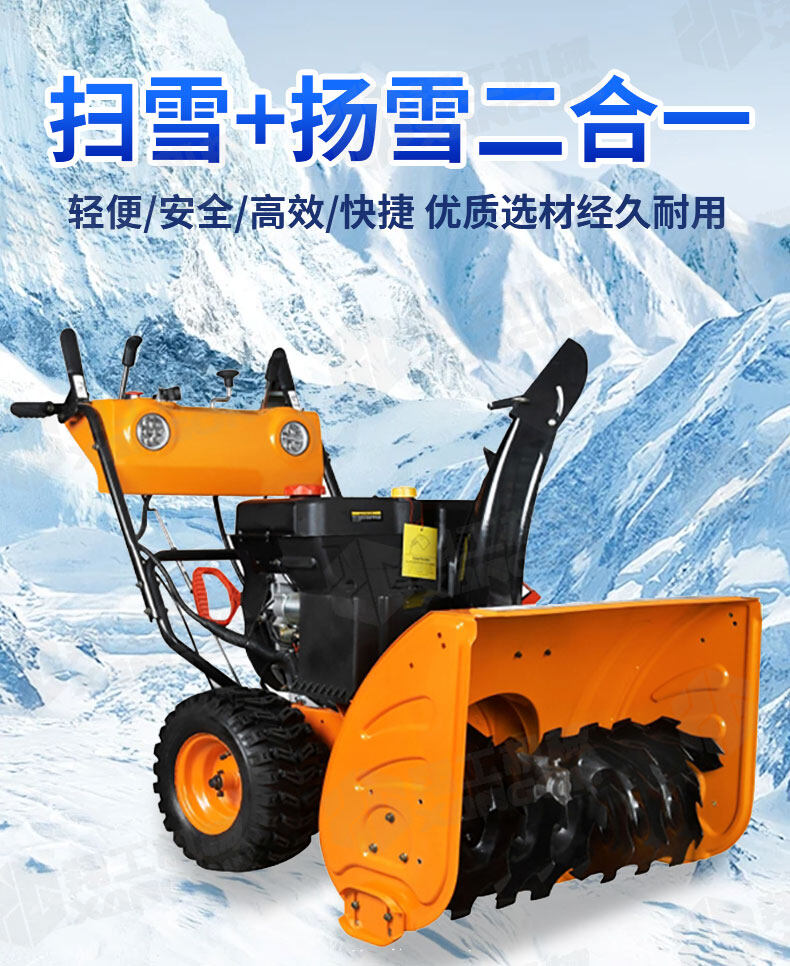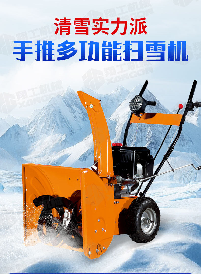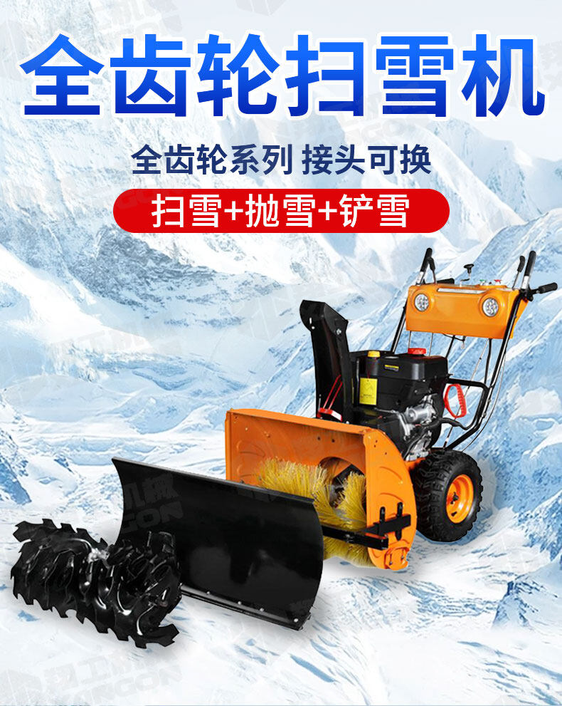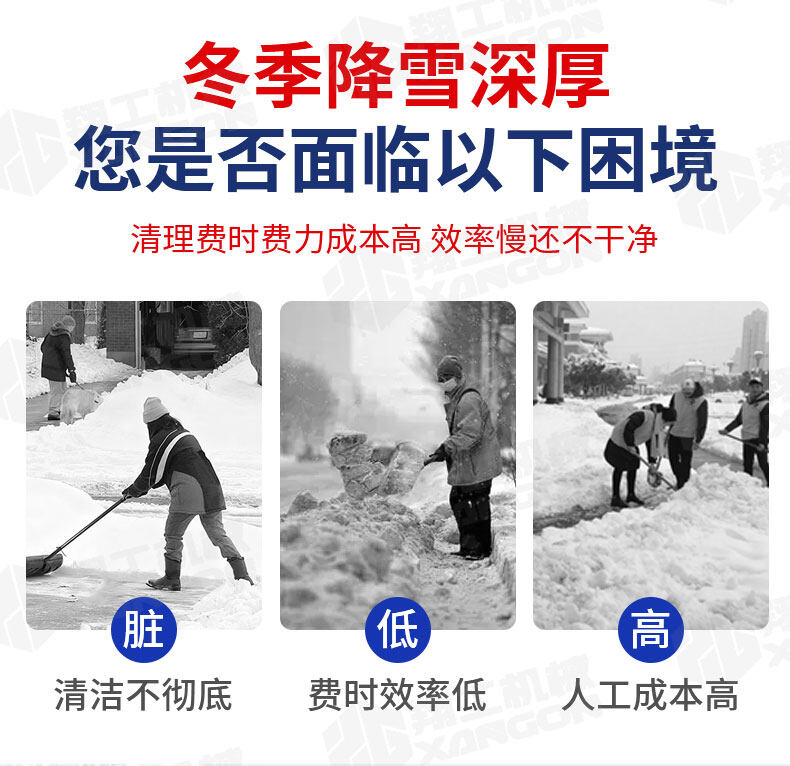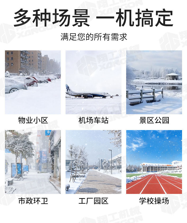 多功能掃雪車由中型卡車或重型卡車、四缸汽車發(fā)動機、吸雪管、鼓風機、排雪管、吸雪口、液壓升降裝置、旋轉式清掃刷、清掃刷連桿、固定架、清掃刷液壓升降裝置組成。