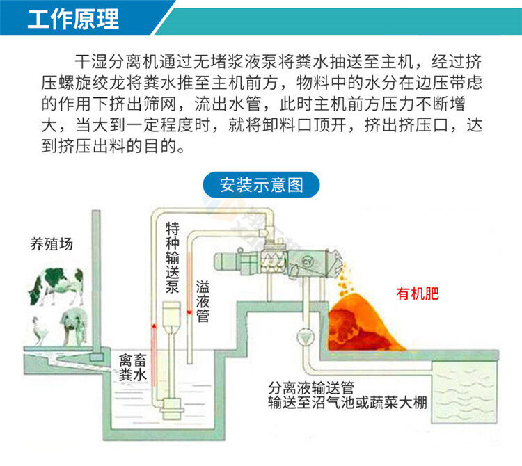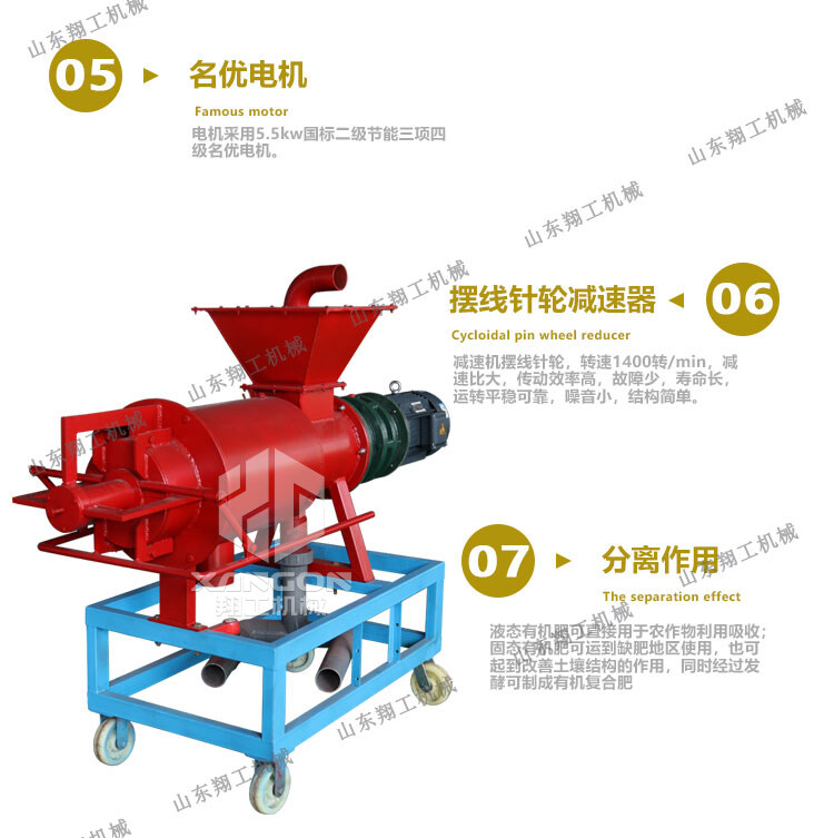 禽畜類糞便處理機能將雞糞、牛糞、豬糞等禽畜糞便原糞水分離為液態有機肥和固態有機肥。液態有機肥可直接用于農作物利用吸收