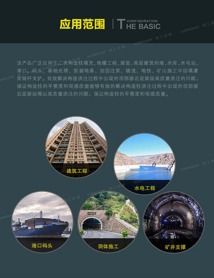 3.此泵機體積小,施工方便,操作簡單,可樓面直接澆注,大大降低了勞動強度。