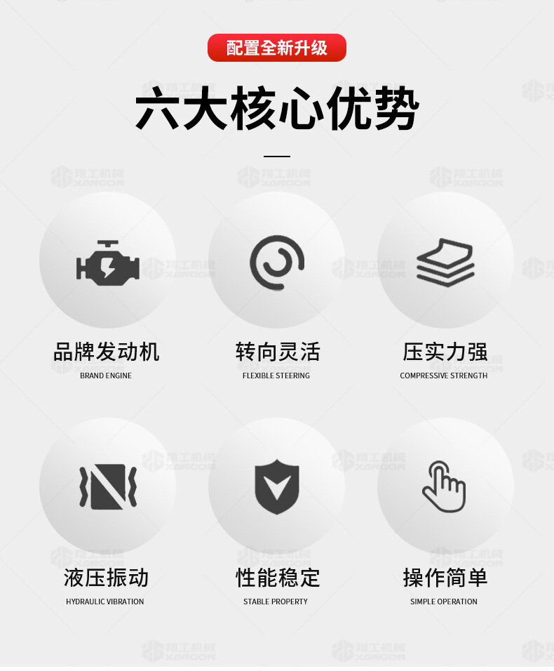 XYL-860座駕壓路機適用于各種溝槽沙土回填壓實、高層建筑地下室土方壓實、小區道路基礎壓實、各種草坪壓實、修補及各種小型工程的使用,解決了大型壓路機無法工作區域的壓實作業。