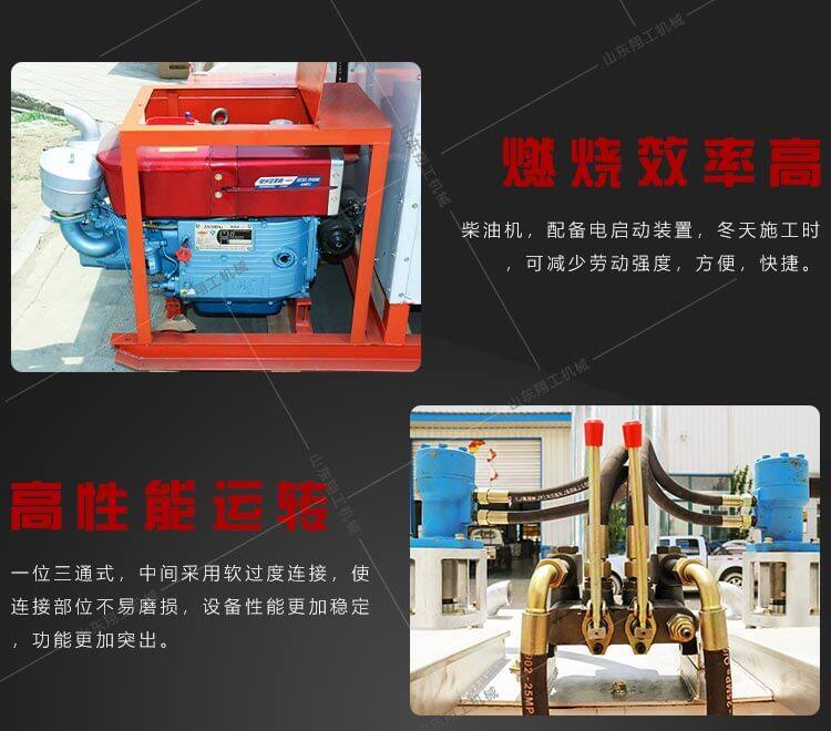 XG1200液壓雙缸熱熔釜是一款熱熔標線施工的主要設備之一。標線施工時,先利用熱熔釜將粉末狀涂料加熱,攪拌,直到熱熔變成液態后,再將涂料放入劃線機內進行劃線施工。由于涂料的融化質量直接關系到標線質量,因此熱熔釜是熱熔標線設備的關鍵部件,是涂料的融化必不可少的部分。