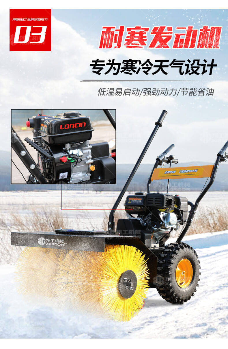 1、節省勞動力,一臺機器能完成至少20個人的工作量 2、節省管理成本,降低環衛工人的交通事故率 3、清掃人行道等路面非常干凈,不留殘雪
