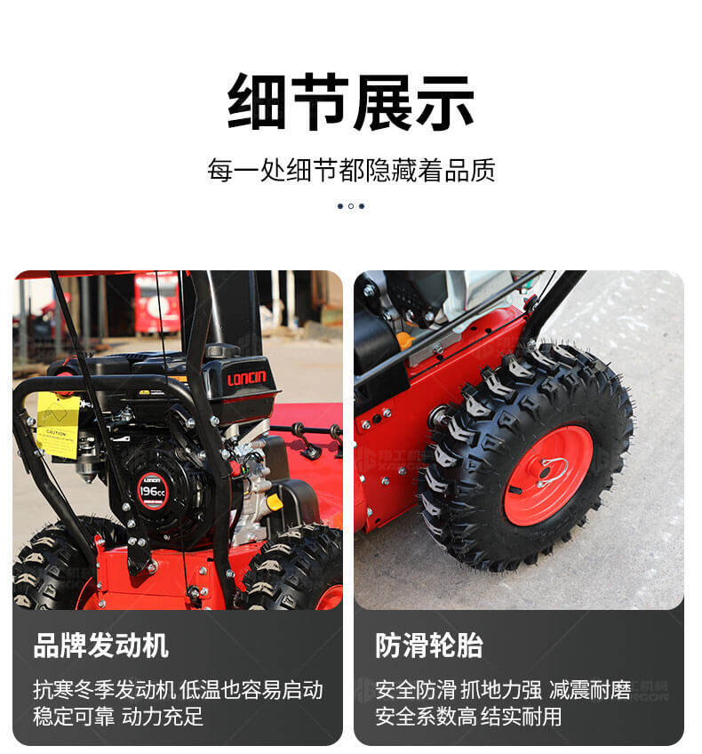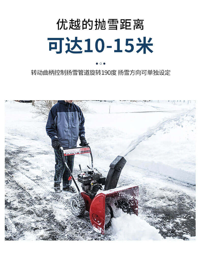1、防腐 安全功能開關,操作簡單,當手動開關松開后,掃雪裝置即停止工作,可以單手操作 2、極佳的拋雪距離,可達10-15米 3、揚雪方向可以單獨設定 4、掃雪裝置使用壽命長