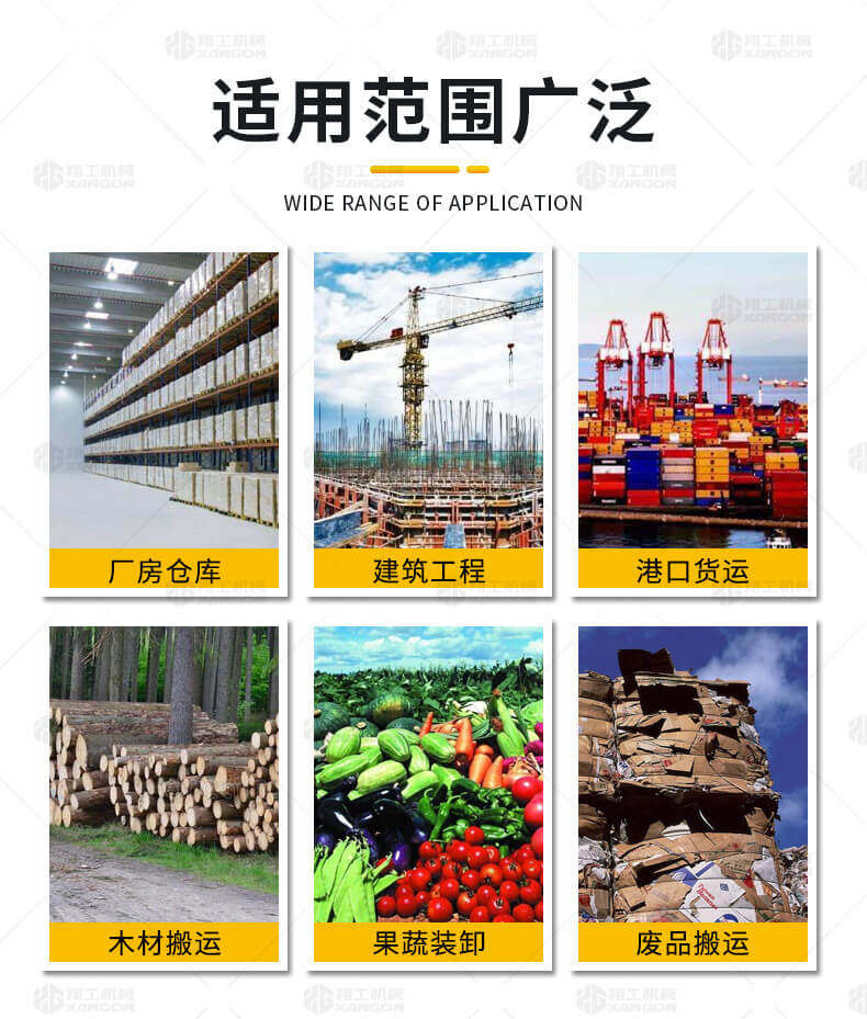 越野叉車適用于道路修筑、城市建設、環境衛生、石料場、中小型土木工程、車站、碼頭、貨場、倉庫等地方,主要用來轉運石料、設備、貨物、城市垃圾箱以及集裝物料等。