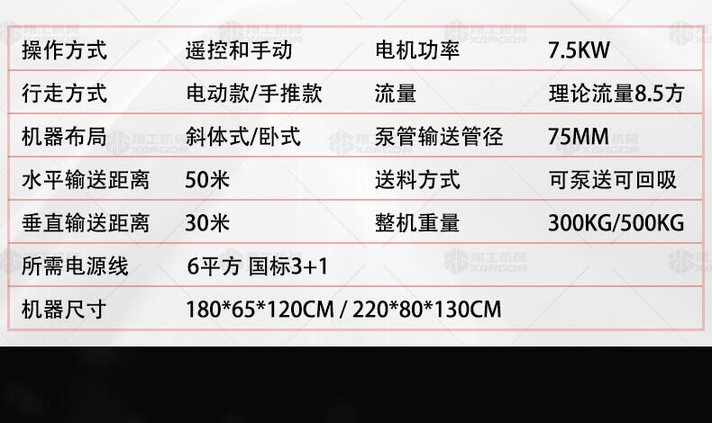 這款7.5KW型澆筑泵帶有自動攪拌功能,性能可靠,設備各個結構制造科學,電機功率大、性能穩定、施工效率高等優勢,使用電動澆筑泵大大提高了施工效率,降低勞動強度,節約人工,被廣泛應用。是工程施工的好幫手。