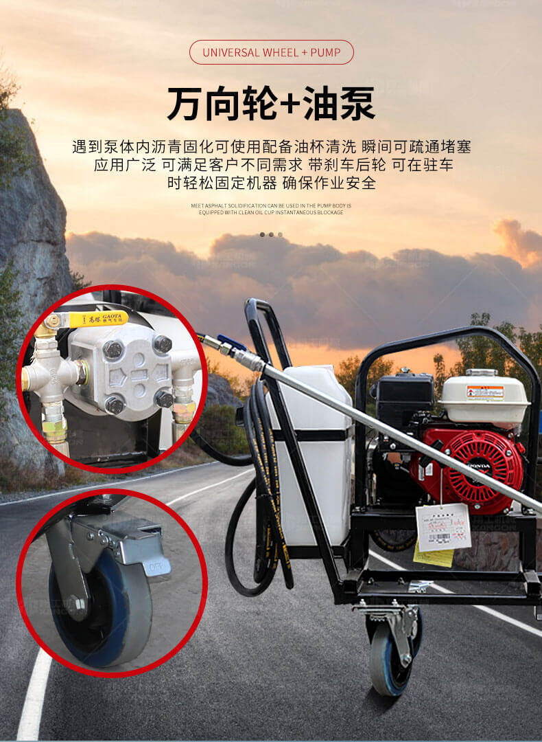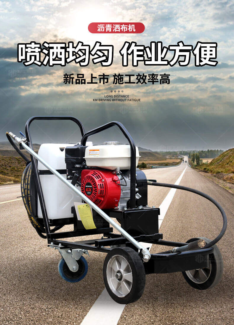 小型乳化瀝青撒布機用于修補瀝青道路上的坑槽,裂縫或?qū)磳⒗匣穆访孢M(jìn)行表層噴層修復(fù)翻新,由于在養(yǎng)護(hù)瀝青道路時經(jīng)常需要對路面均勻噴灑乳化瀝青或防水材料。