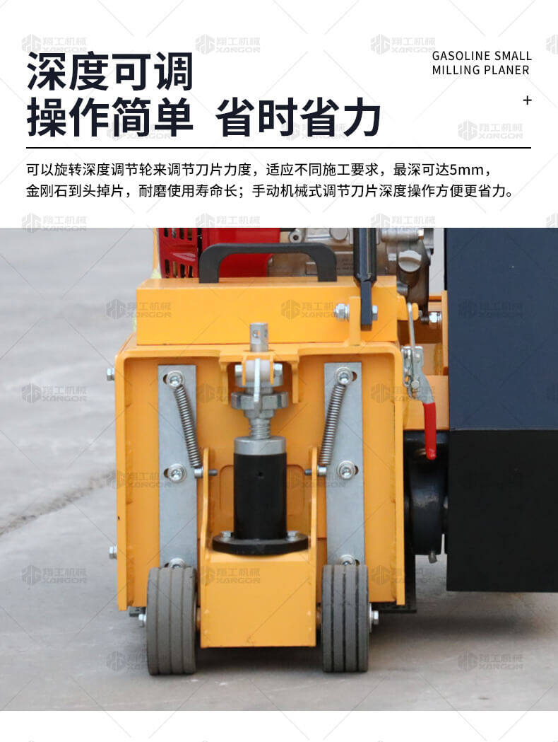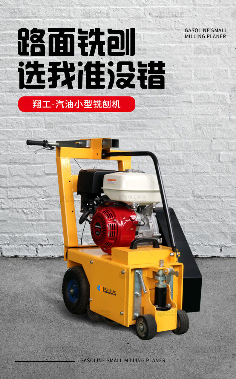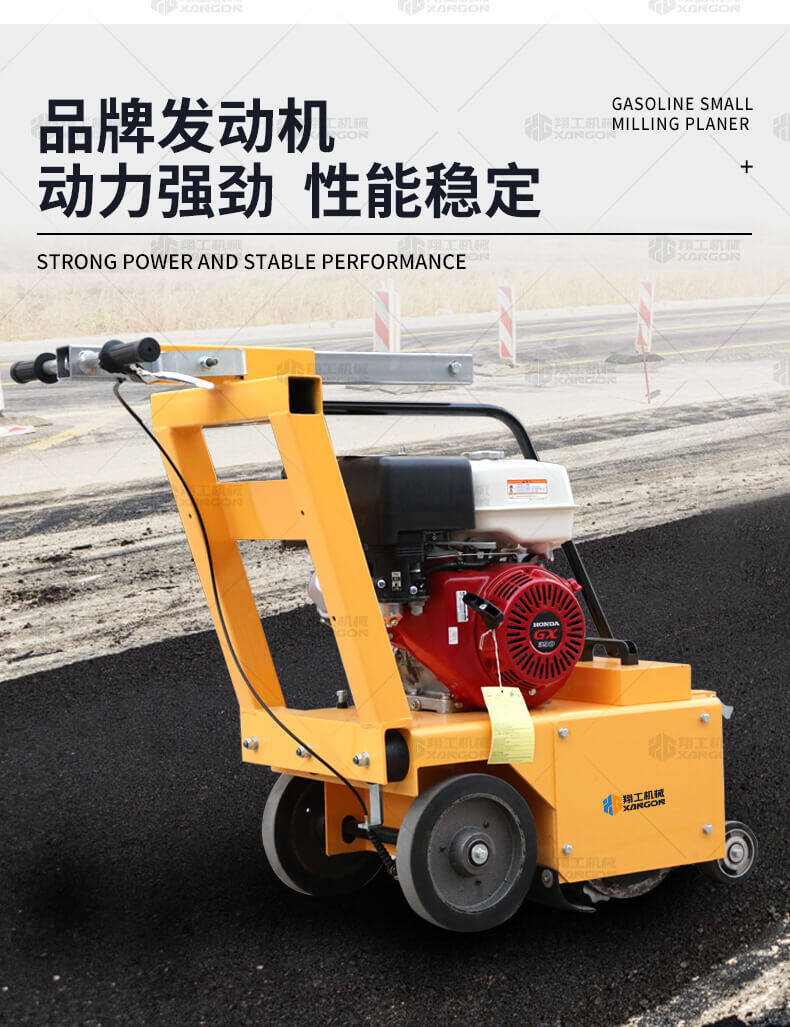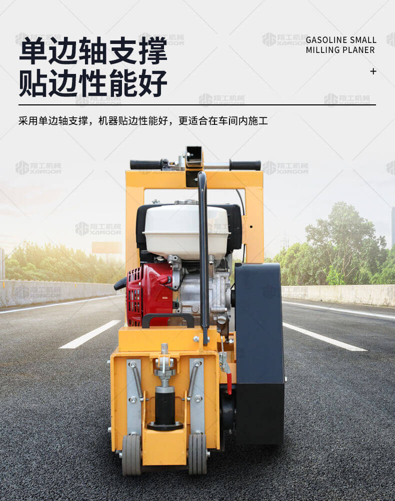 汽油小型銑刨機用于橋面鋪設瀝青或車間舊的混凝土地面重新攤鋪混凝土之前,清理水泥浮漿以及鏟平拉毛,也用于清理建筑施工中的堅硬灰渣。