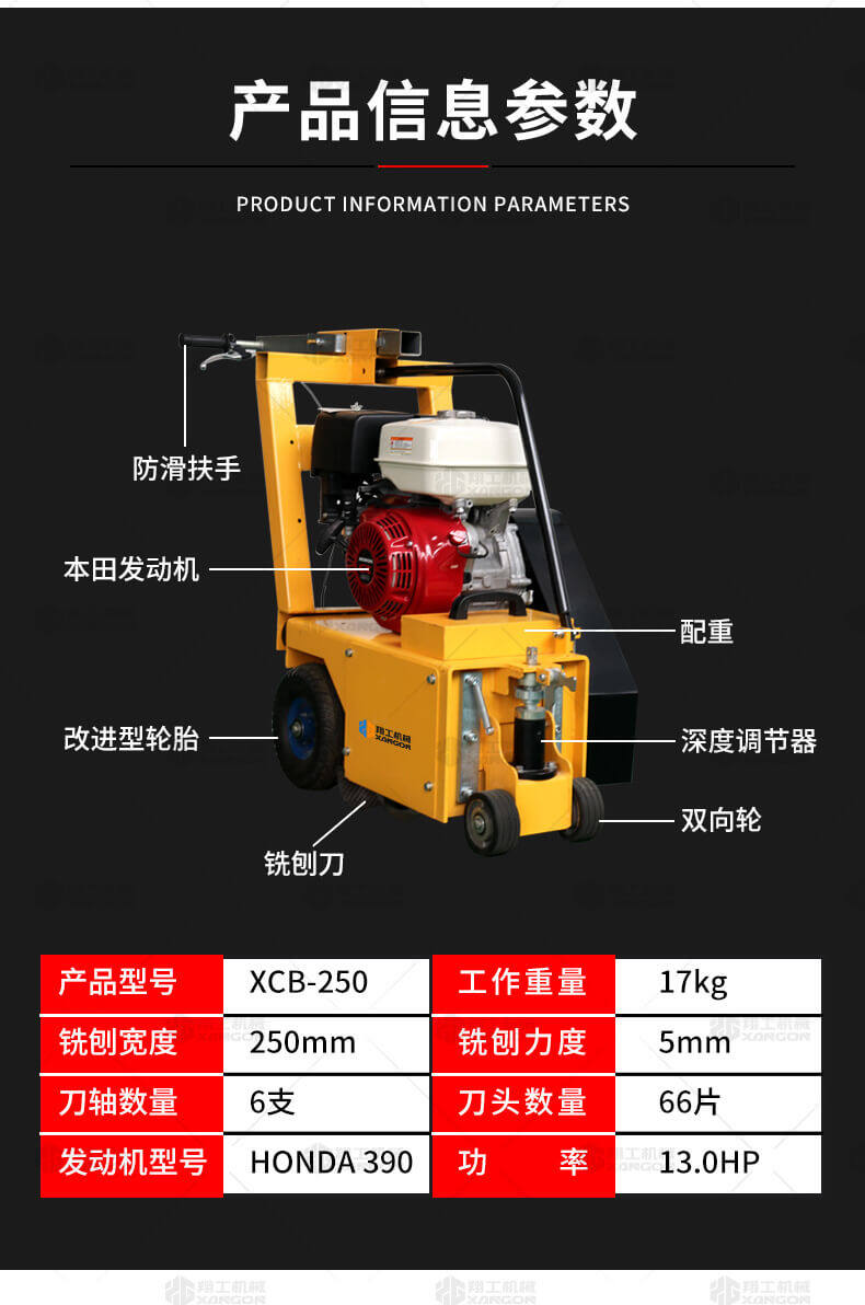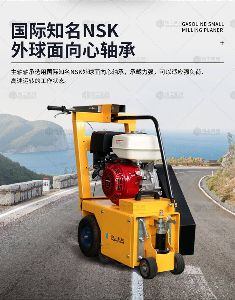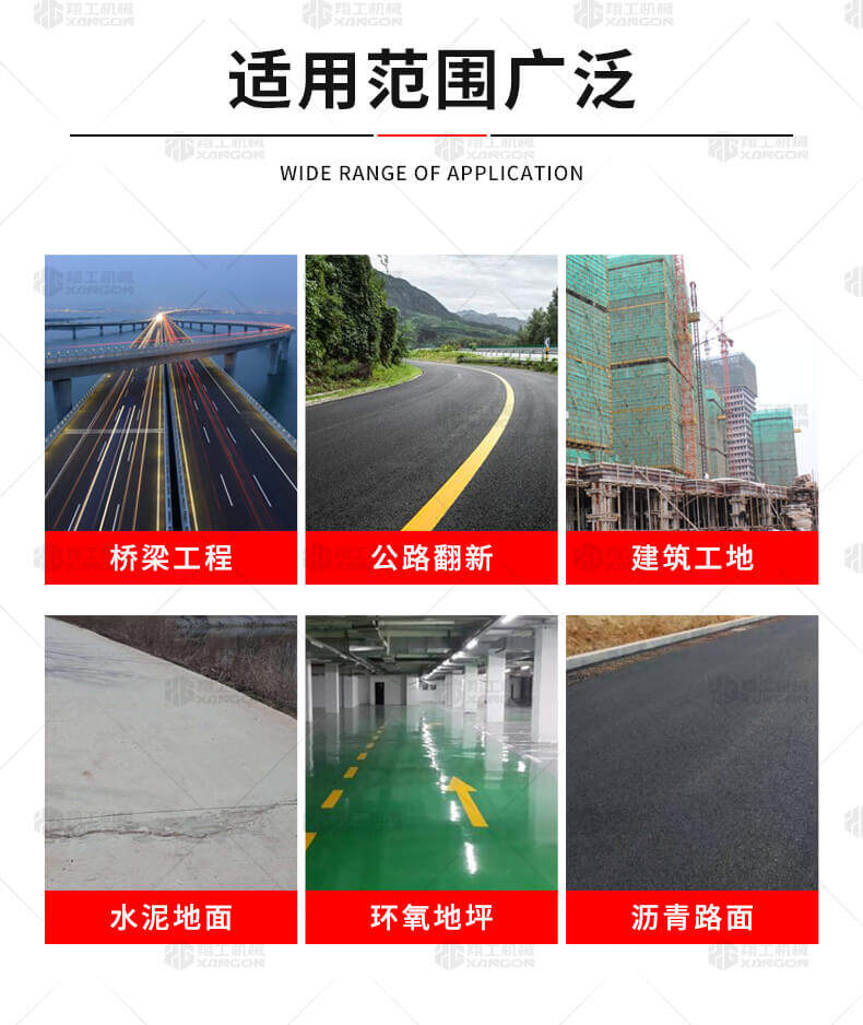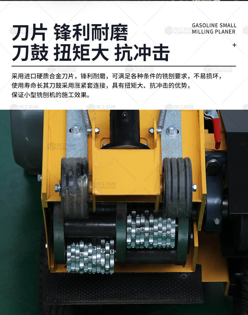汽油小型銑刨機用于橋面鋪設瀝青或車間舊的混凝土地面重新攤鋪混凝土之前,清理水泥浮漿以及鏟平拉毛,也用于清理建筑施工中的堅硬灰渣。