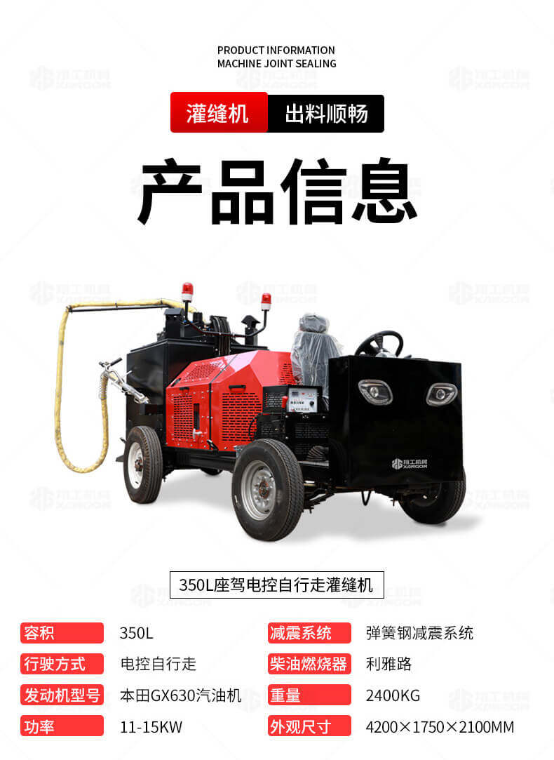 350L電行走座駕灌縫機是中型路面裂縫養護工程量施工佳選設備。自行走款瀝青灌縫機是我公司研發的新款灌縫機......