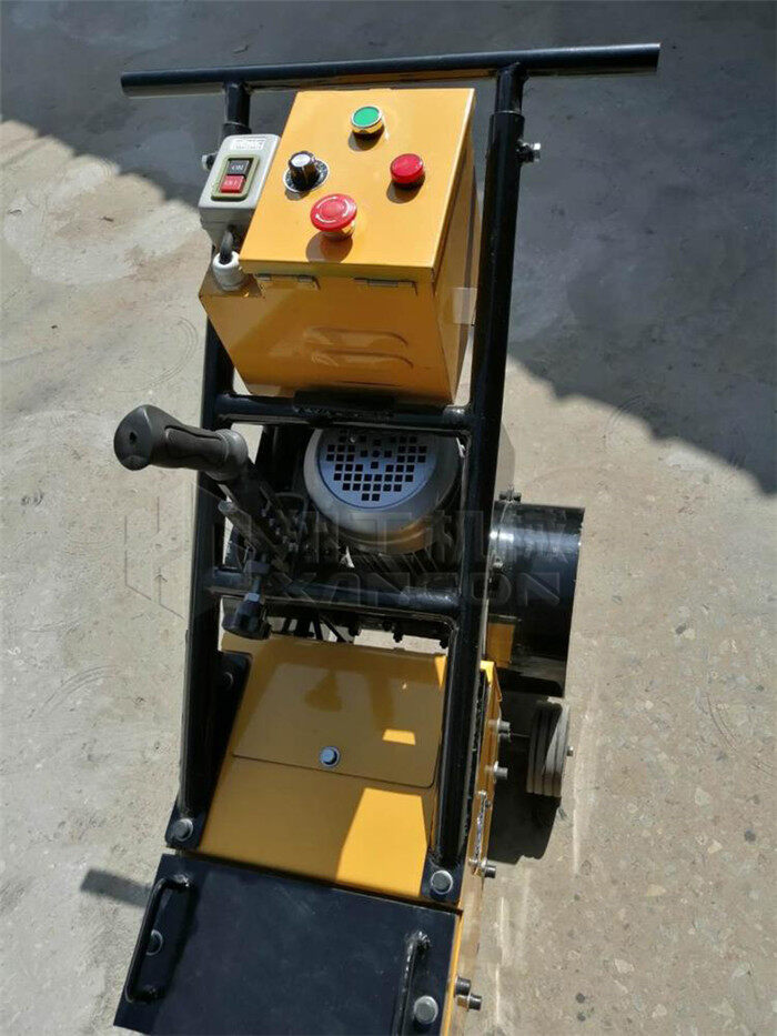 4:全部調(diào)節(jié)完畢后,先打開右邊的ON啟動開關,OFF為鏟刀的停止開關,中間面板上面綠色為電源指示燈,左邊紅色為緊急停止開關,右邊綠色的為行走電機啟動開關,最下面黑色為行走電機調(diào)速開關,可根據(jù)地面情況選擇合適的行走速度;