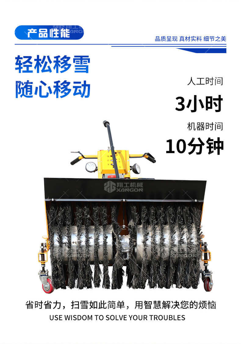 自行走多功能掃雪機是一款用于道路、廣場等大區域面積積雪清掃的滾刷式掃雪機。該滾刷具有極高的耐磨度,即使針對極度不平道路積雪的清掃也擁有高效的潔凈效果。該機小巧靈活,價格低、功能多,節省勞動力,一臺機器頂10個-20個人工。是機關、單位、學校、停車場、廣場、物業小區、花園、非機動車道等廣泛選用的冬季清雪機械。一機多用型,經濟實用!