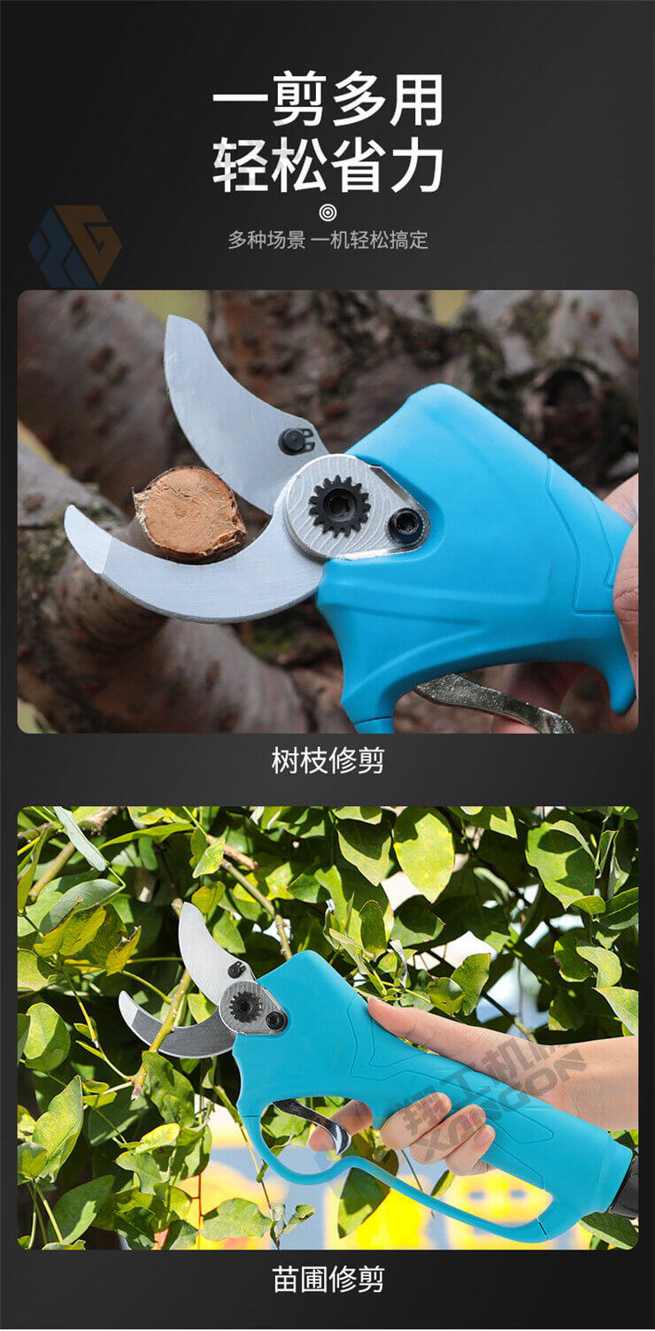 如果您是專(zhuān)業(yè)果樹(shù)剪枝從業(yè)人員,有了它: 1、您可以成倍提高剪枝效率,增加剪枝收益。 2、真正實(shí)現(xiàn)靠技術(shù)及先進(jìn)設(shè)備賺錢(qián),而不是以前的靠體力營(yíng)生。 3、剪枝作業(yè)結(jié)束后,將不會(huì)有長(zhǎng)時(shí)間手指、手臂疼痛難忍的情況出現(xiàn),您可以繼續(xù)輕松生活。
