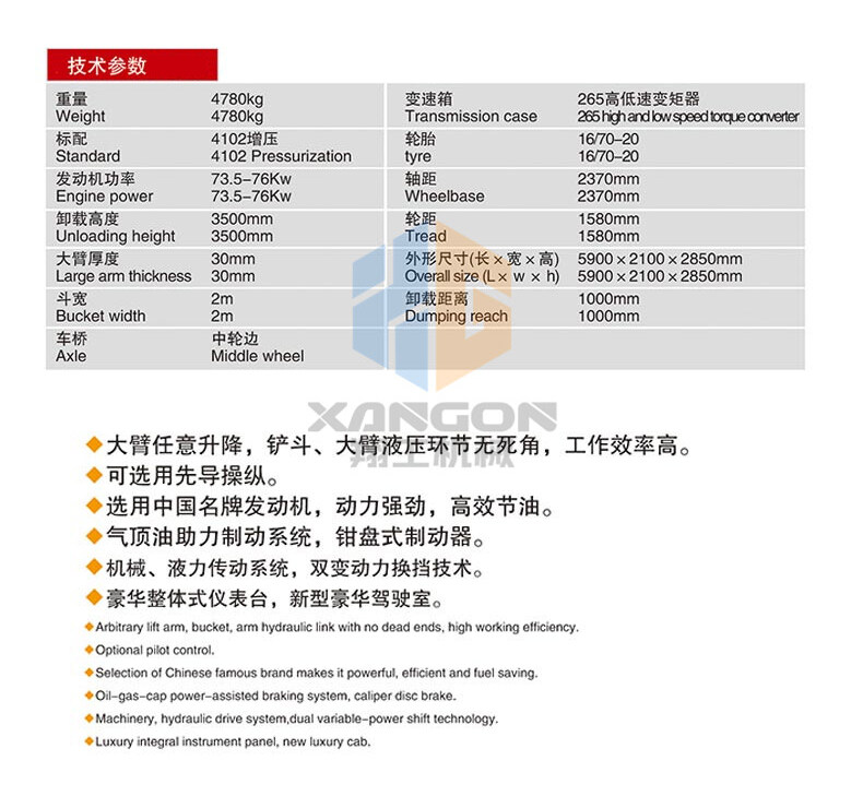 主要用于鏟裝土壤、砂石、石灰、煤炭等散狀物料,也可對礦石、硬土等作輕度鏟挖作業(yè)。換裝不同的輔助工作裝置還可進(jìn)行推土、起重和其他物料如木材的裝卸作業(yè)。在道路、特別是在高等級(jí)公路施工中,裝載機(jī)用于路基工程的填挖、瀝青混合料和水泥混凝土料場的集料與裝料等作業(yè)。