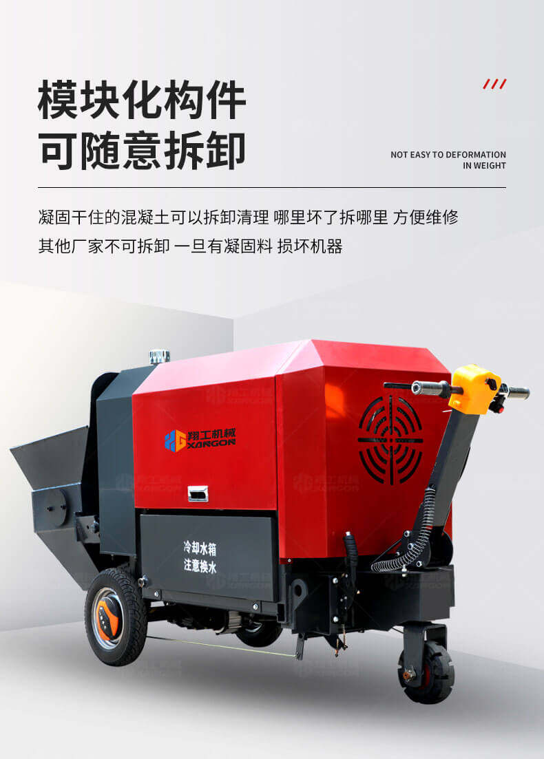 這款7.5KW型澆筑泵帶有自動(dòng)攪拌功能,性能可靠,設(shè)備各個(gè)結(jié)構(gòu)制造科學(xué),電機(jī)功率大、性能穩(wěn)定、施工效率高等優(yōu)勢,使用電動(dòng)澆筑泵大大提高了施工效率,降低勞動(dòng)強(qiáng)度,節(jié)約人工,被廣泛應(yīng)用。是工程施工的好幫手。