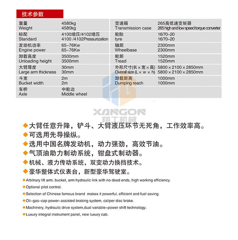 主要用于鏟裝土壤、砂石、石灰、煤炭等散狀物料,也可對礦石、硬土等作輕度鏟挖作業。換裝不同的輔助工作裝置還可進行推土、起重和其他物料如木材的裝卸作業。在道路、特別是在高等級公路施工中,裝載機用于路基工程的填挖、瀝青混合料和水泥混凝土料場的集料與裝料等作業。