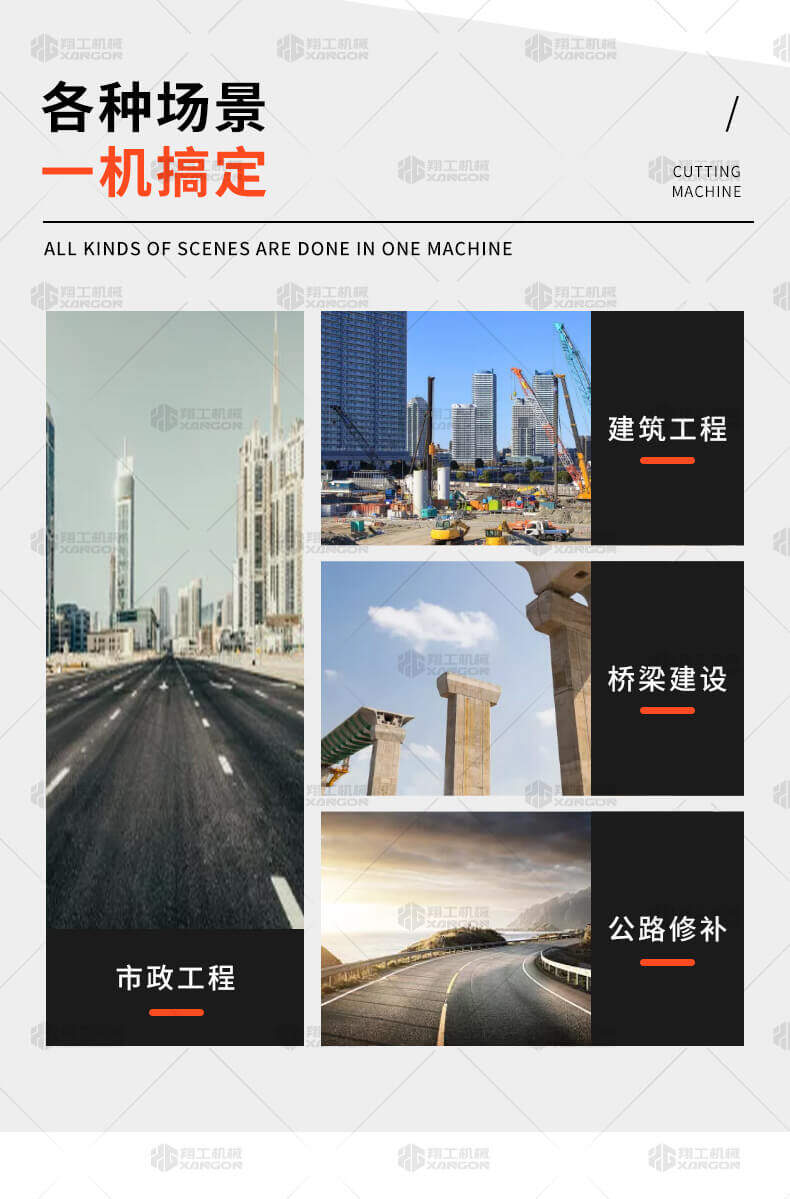 用于公路、市政、建筑、煤氣、通信部門修補(bǔ)公路或開挖溝槽時進(jìn)行路面切割。相對于電動或柴油動力的路面切割機(jī),操作輕巧省力,運輸方便,工作效率高。