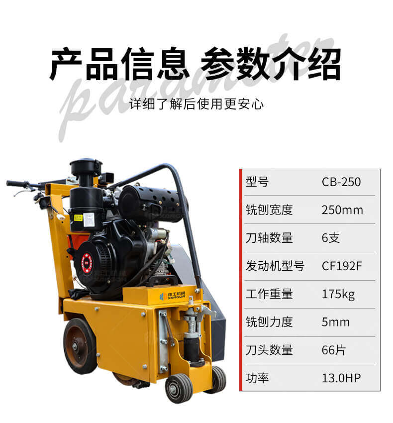 用于橋面鋪設瀝青或車間舊的混凝土地面重新攤鋪混凝土之前,清除水泥浮漿以及鏟平拉毛,也用于清除建筑施工中遺留的堅硬灰渣。