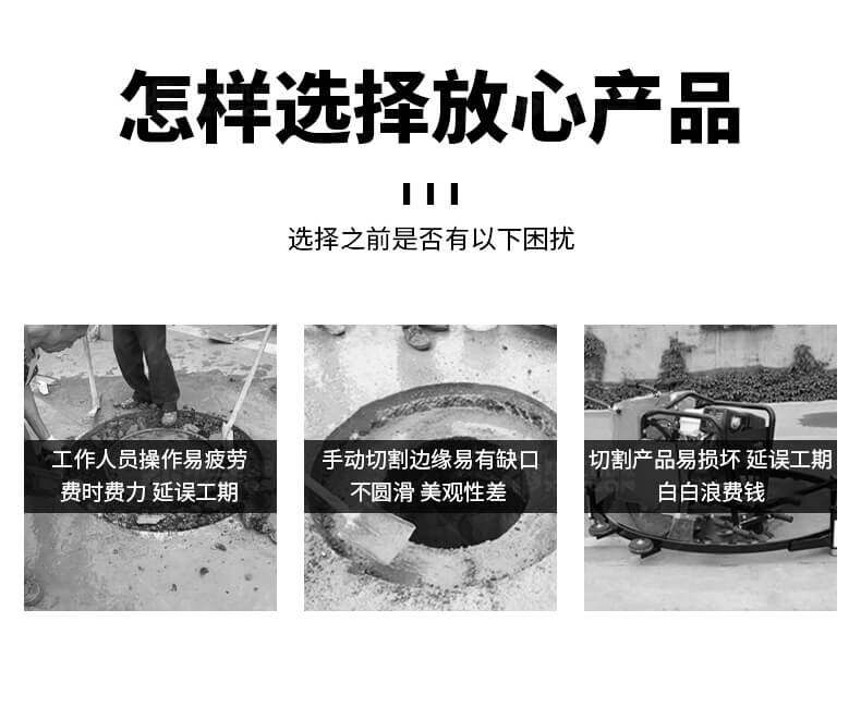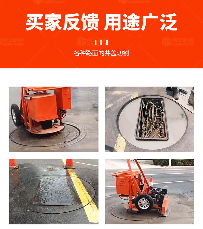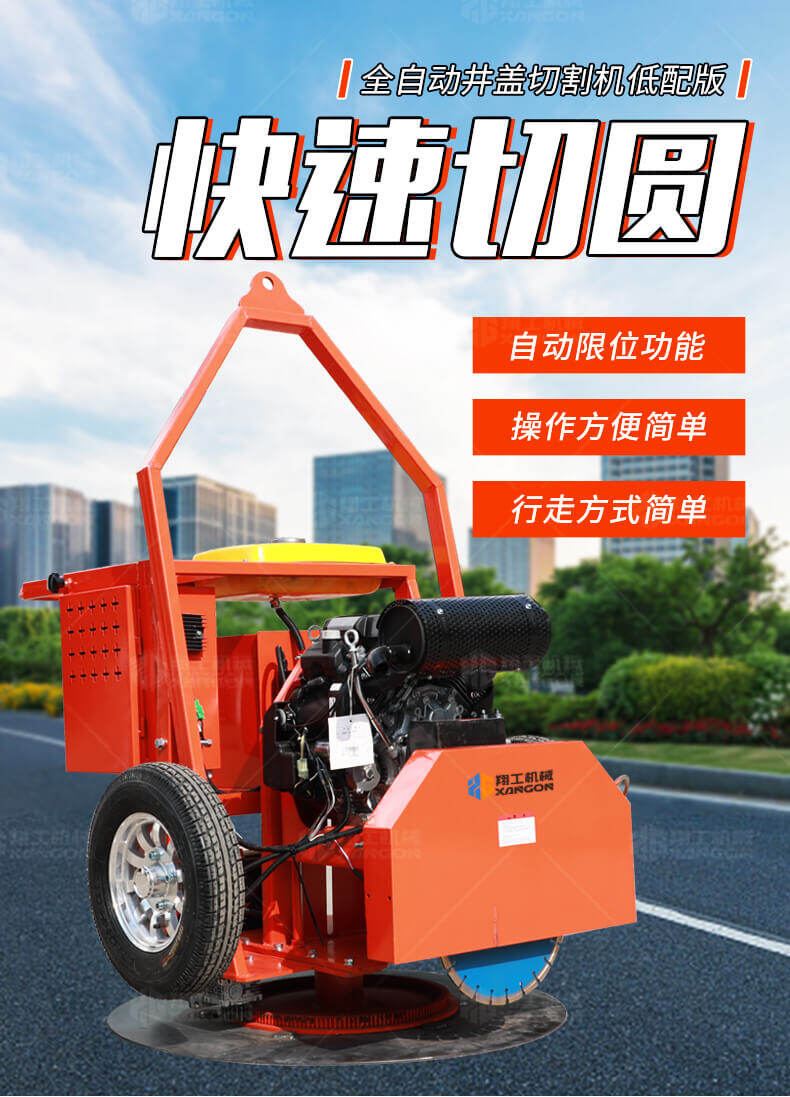 全自動井蓋切割機,專門用于對城市道路中機動車道等井蓋周圍的水泥、混凝土、瀝青、特殊路面進行圓形切割。為清除井蓋周圍的破損路面提供分割區域,修復后的地面美觀,延長了路面的使用壽命。