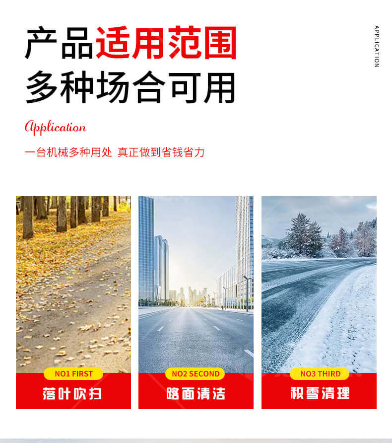 高速公路應急車道日常清掃;各種場合積雪、樹葉快速吹掃;結冰路面快速撒布融雪劑;