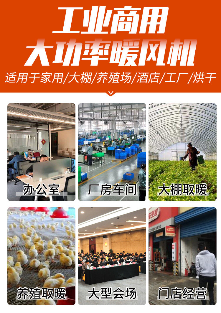 適用于戶外舞臺(tái),廠房車間,大棚種植,養(yǎng)殖保溫,室內(nèi)取暖等。