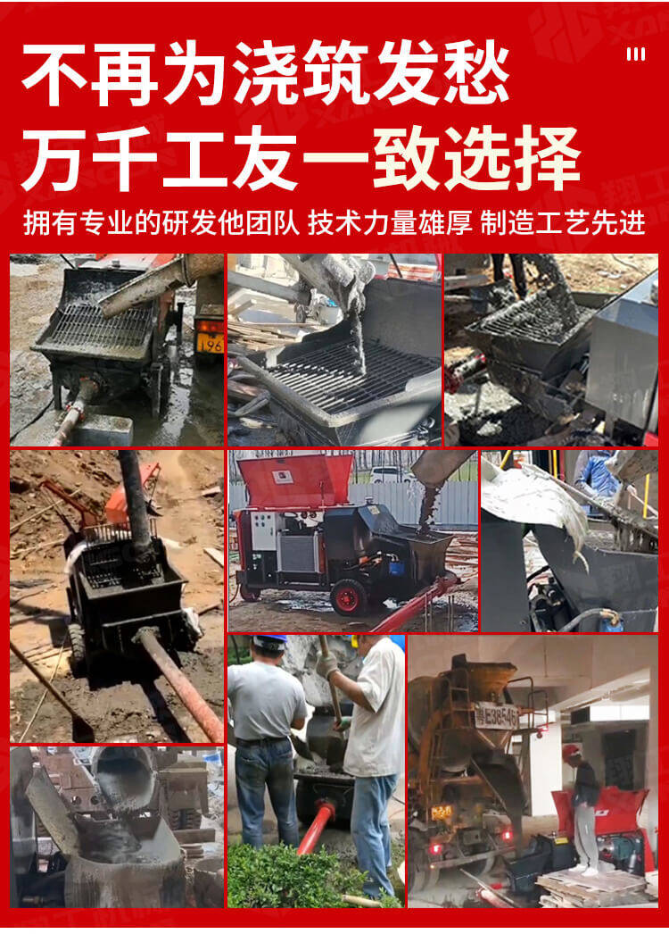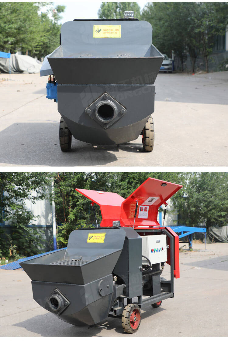 本產品為手推式行走臥式造型輸送泵,料斗帶攪拌功能,可泵送機制砂;風冷散熱,散熱效果好;集成芯片控制箱,多條備用線路獨立設計,不用擔心控制系統問題;操作部件采用24v 安全感應電壓,安全可靠;S 彎采用兩個單向油缸,速度均勻。