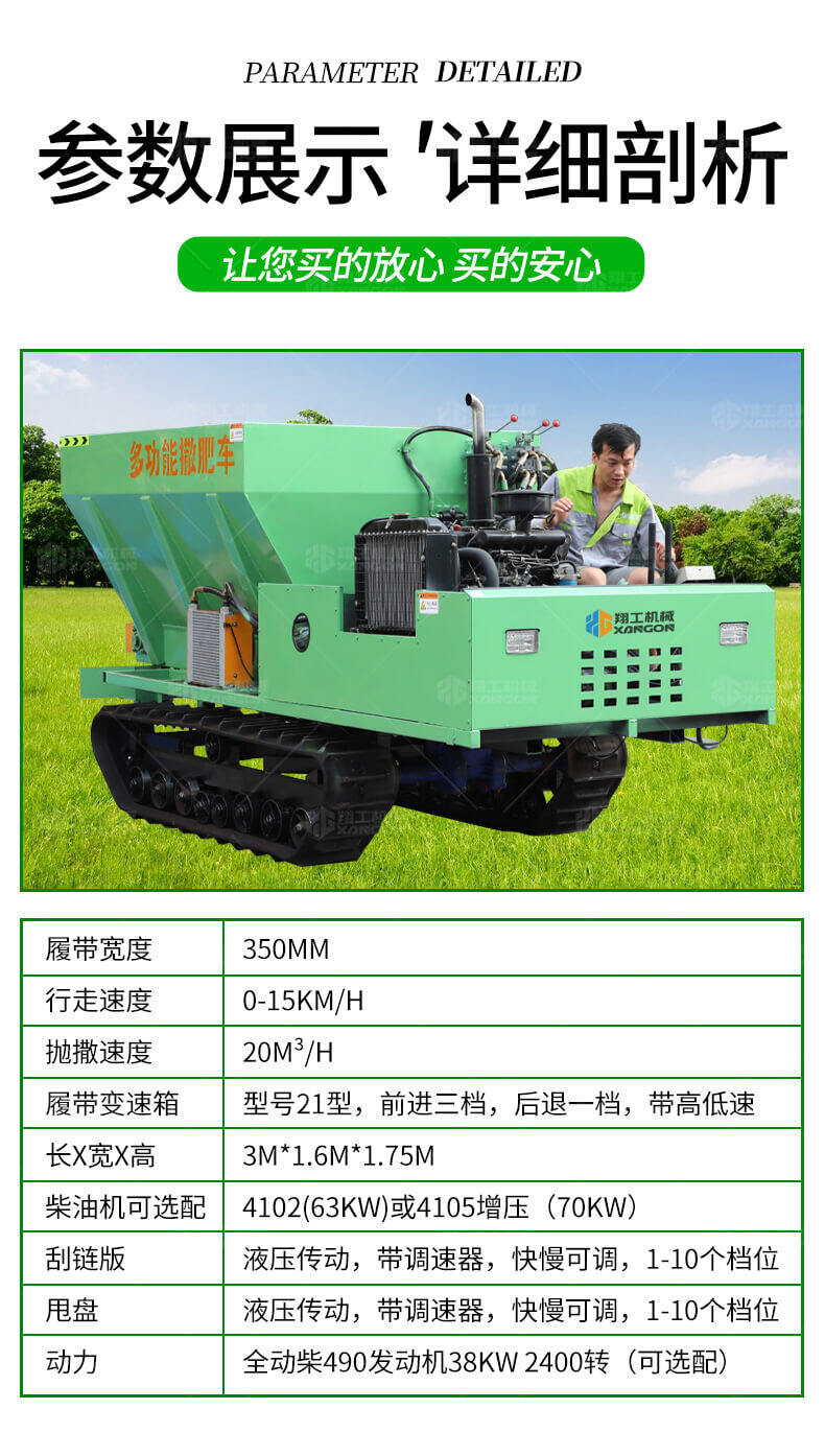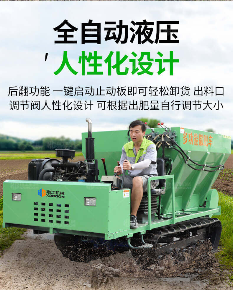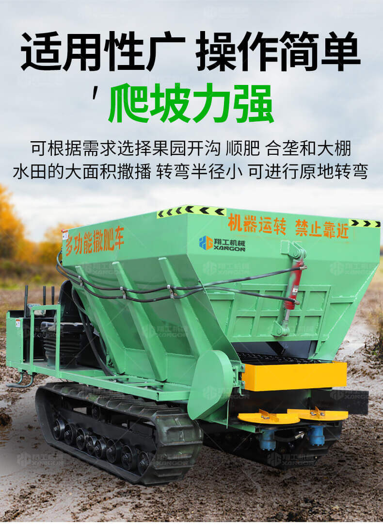 履帶式撒糞車是一款根據果園、大棚丘陵地帶量身定制的一款撒糞車,轉彎半徑小既可揚撒各類農家肥,也可直接鋪肥。