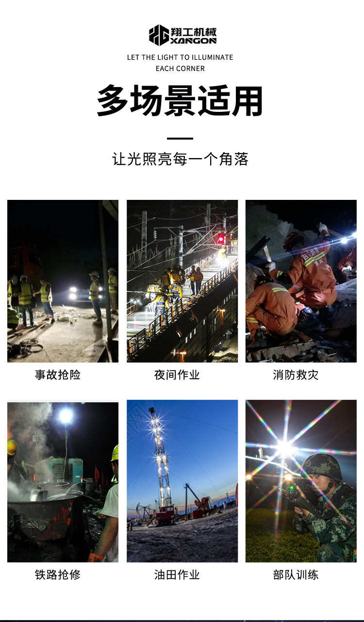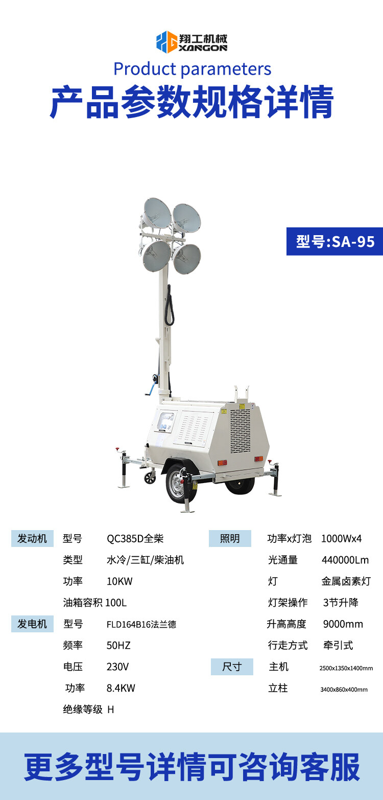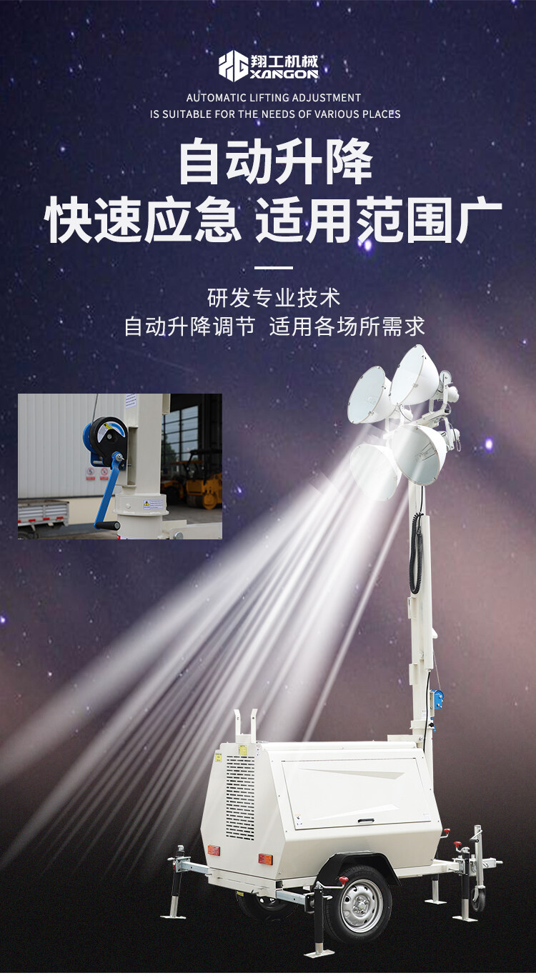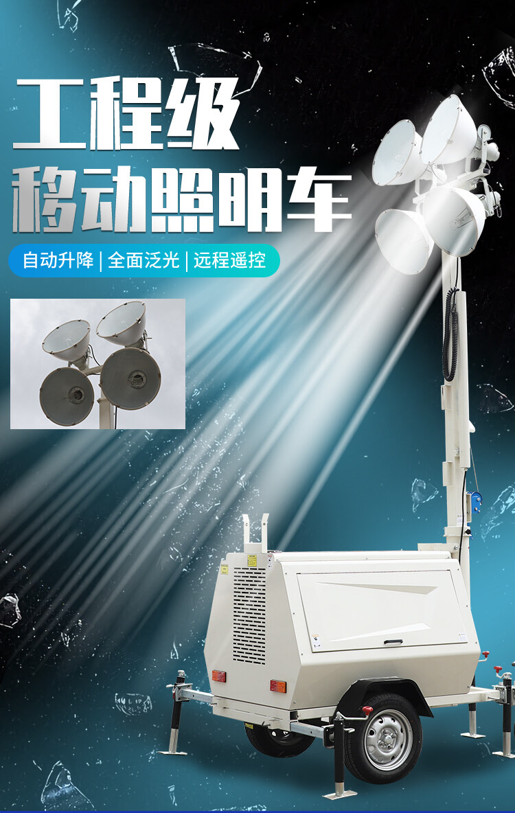 095移動照明燈車采用高功率LED光源,照明強度可達20000流明以上,覆蓋范圍廣,適用于夜間施工、應急搶險等場景。配備液壓升降系統,燈架可升至6米,實現360°無死角照明。支持發電機/市電雙供電模式,配備大容量蓄電池,續航持久。全車防水防塵,移動靈活,是高效可靠的專業照明設備。