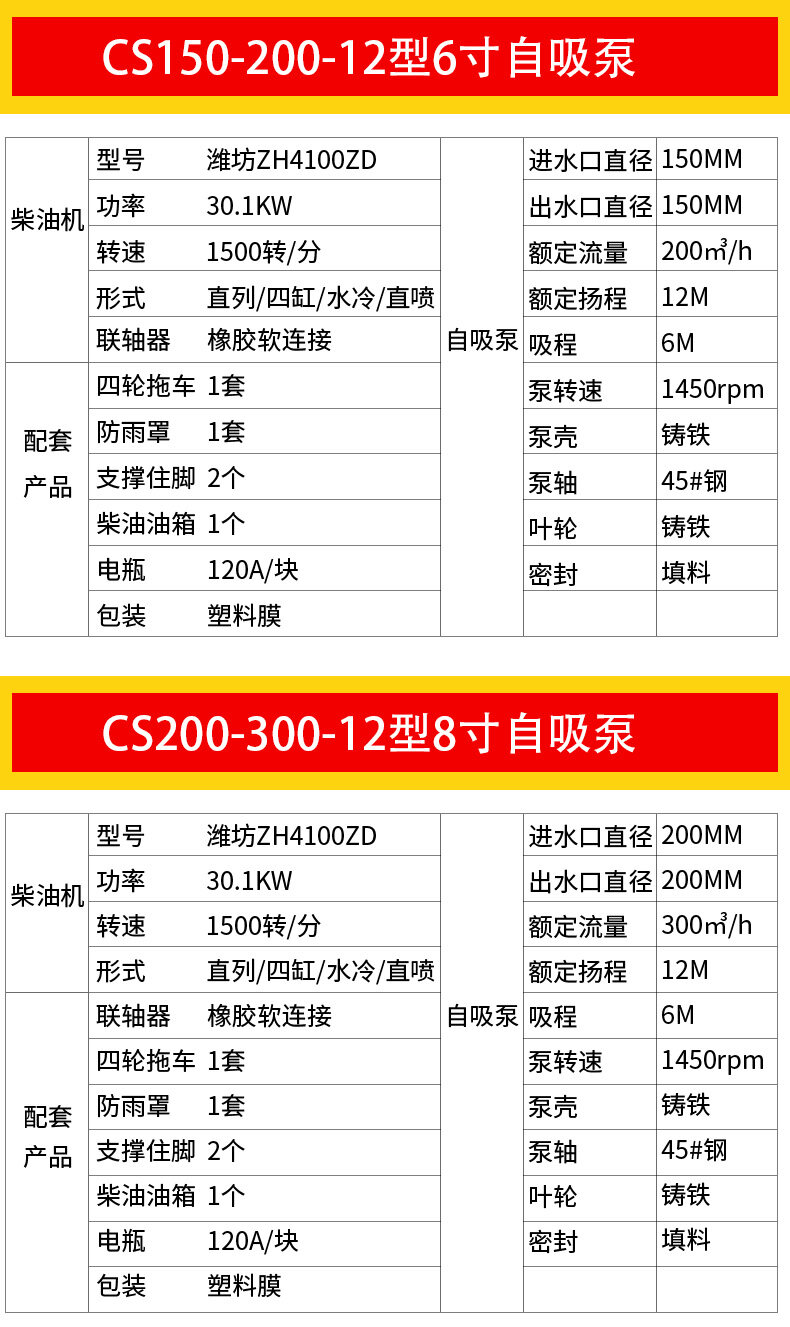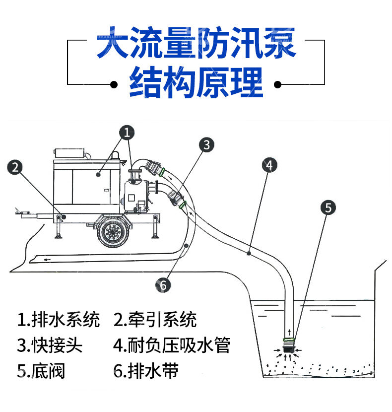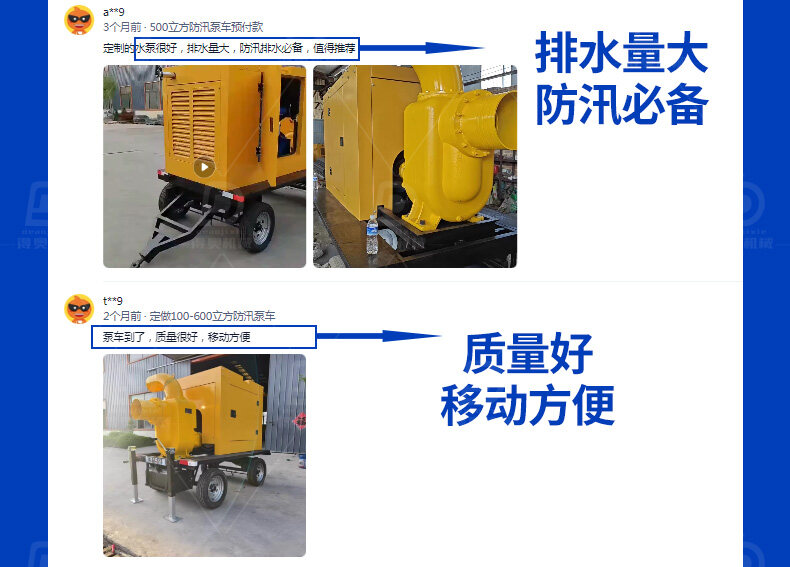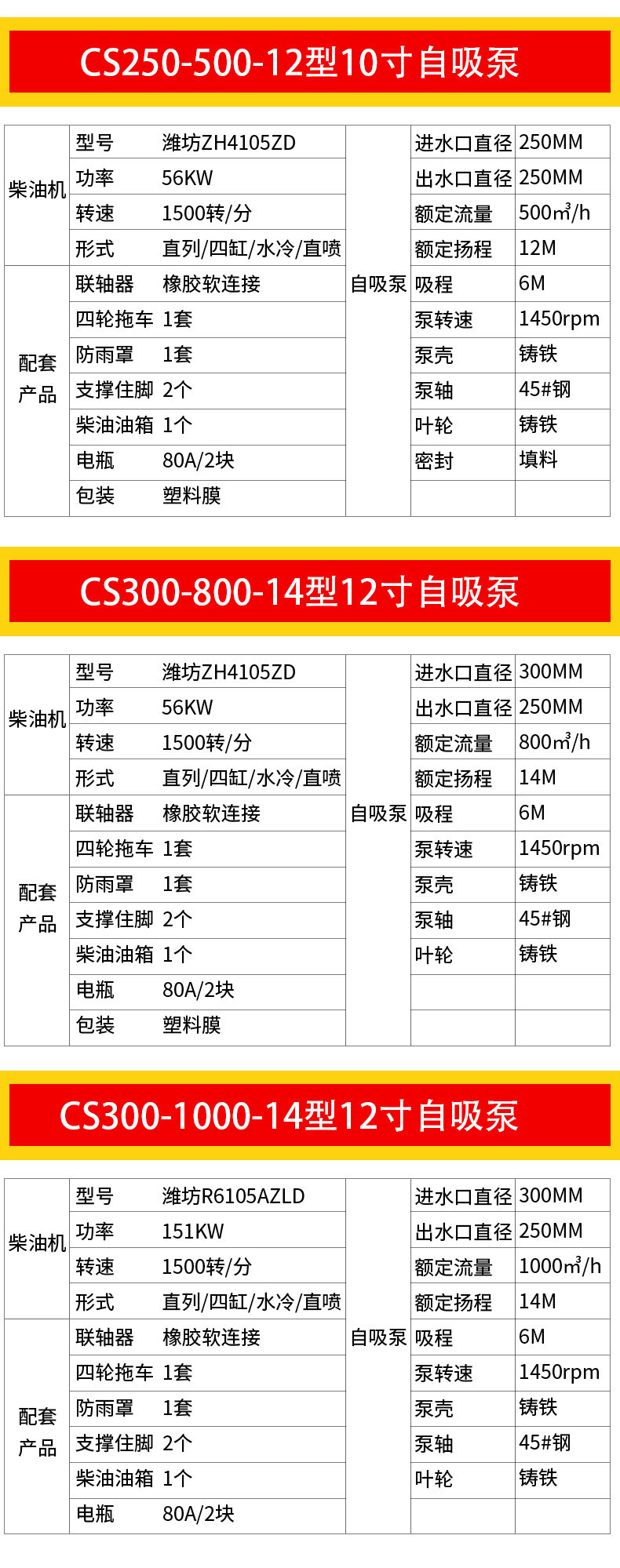 移動防汛排水泵 大口徑大流量 防洪排澇 應急排水 型號齊全