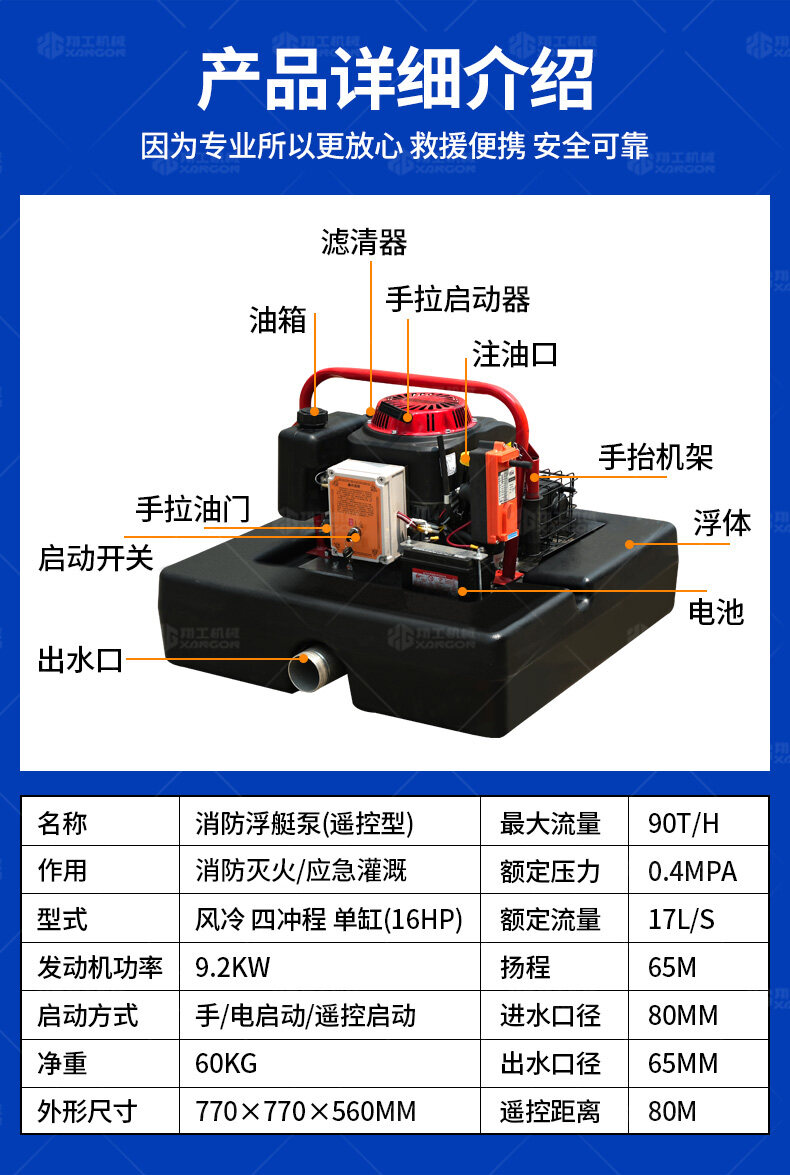 浮艇泵是一種便攜式水上抽水設備,專為消防、排澇設計。采用漂浮結構,可快速部署于河流、池塘等水源,抽水流量大(30-200m3/h),壓力穩定,適應復雜環境。輕便靈活,操作簡單,適用于消防滅火、抗旱灌溉及應急排水,是野外作業和災害救援的高效裝備。