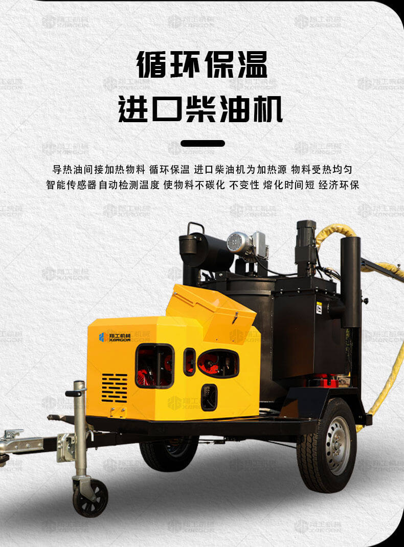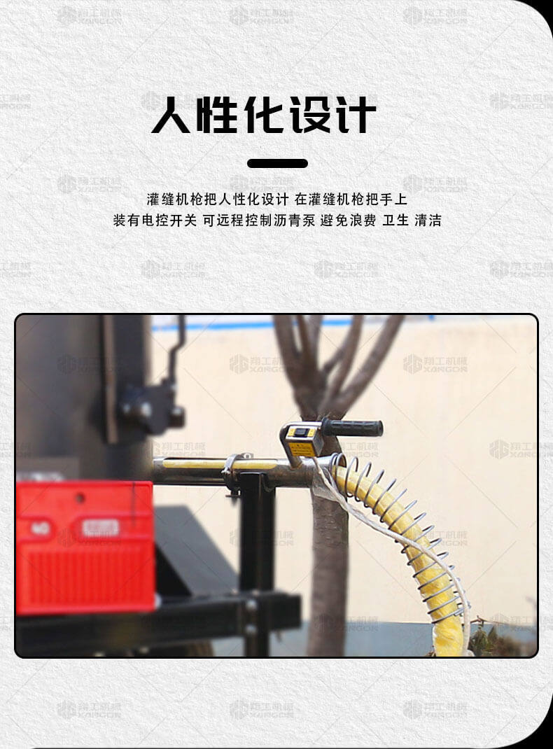 XGF-200瀝青灌縫機使用原料為瀝青灌縫膠,主要用于瀝青路面不規則裂縫、混凝土路面、橋梁伸縮縫、上下水道、煤氣管埋設機鋪裝路面的連結處防水處理,是翔工機械專門設計、生產的瀝青補灌縫機械。